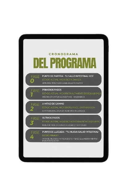 Una guía estructurada, clara y paso a paso donde vas a entender cómo funciona el proceso de desinflamación intestinal. Te acompaña desde el primer día y te explica qué hacer, cómo y cuándo.